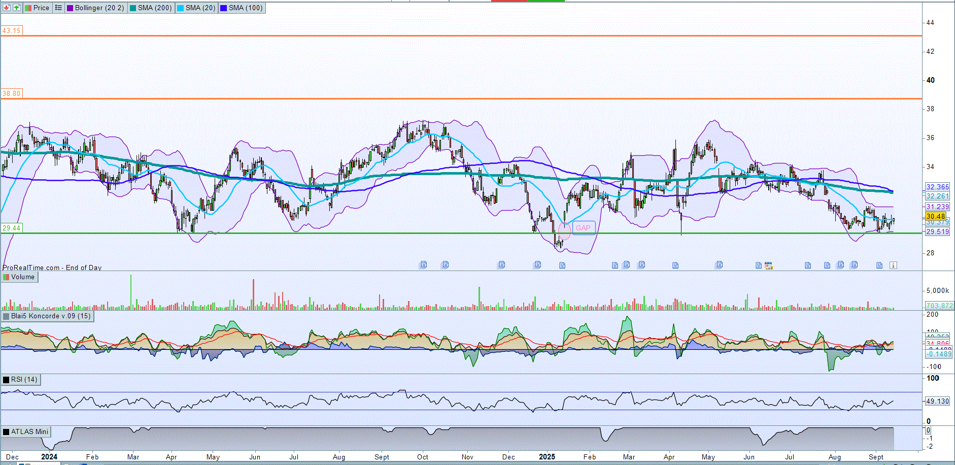 Ahora mismo, el valor viene de recuperar esos [29-30]€ y asentarse por encima, habiendo dejado un GAP en la zona de los 29€ que puede que vaya a tapar en el futuro.