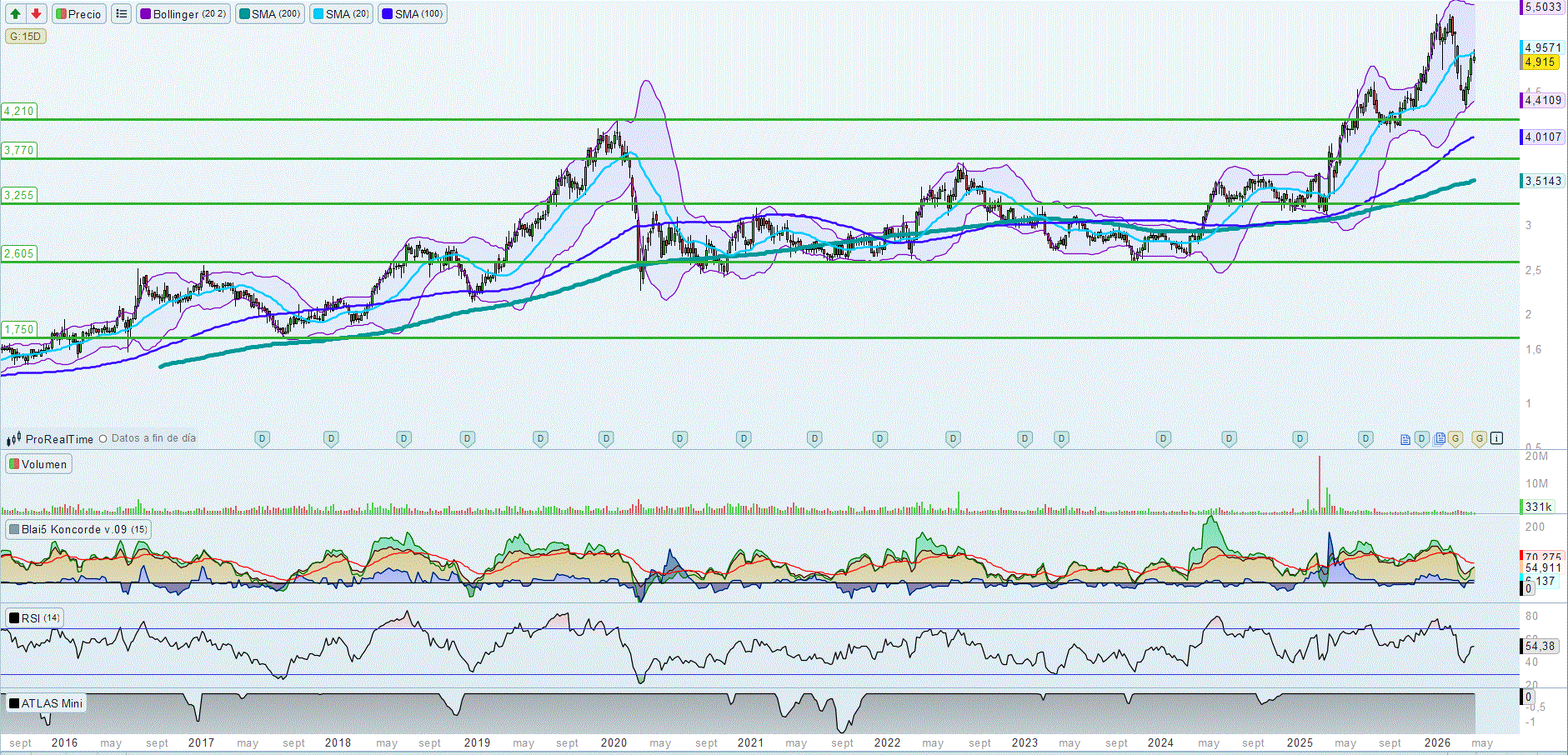 Las medias móviles de 200 actúan como soporte en los 3,50€.